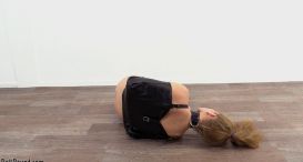 This girl is a real brat! Annika definitely hates being restrained in a box tie armbinder and frog tie straps. She starts kicking the wall and rolling around on the floor in protest. I had to gag her, but even then she didn’t stop struggling and moaning. I think Annika just needs to be left naked and tied up for a good long time, she might calm down eventually!