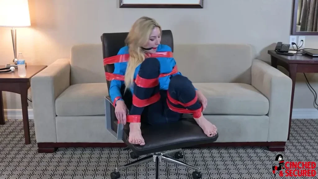 All she wanted to do was relax and maybe seek a little excitement on her vacation. She got the excitement, but definitely not in the manner she had hoped for! Wearing jeans and a lovely blue shirt, Agatha had been taped to a chair, a ball gag strapped into her mouth which caused her to drool like mad. She had no idea who her assailant was or how he had gotten into the room, but she gave a silent prayer of thanks for her jeans. Given the way her legs had been bound, leaving er crotch on display, she was endlessly grateful for those jeans and the modesty they afforded her. The man returned, carrying a pair of sears, and her heart sank. First, he ran the blades over her sensitive bare soles, causing her to shriek with laughter, more drool pouring down her chin as she gurgled helplessly. Then he made a small cut in her shirt and tore it open to reveal her bare breasts! She mewled, more drool spilling from her mouth and dripping on her chest, causing her to shudder in disgust and fear. There was no telling what lay in store for her, but she knew one thing: She was going to need a vacation from this vacation!