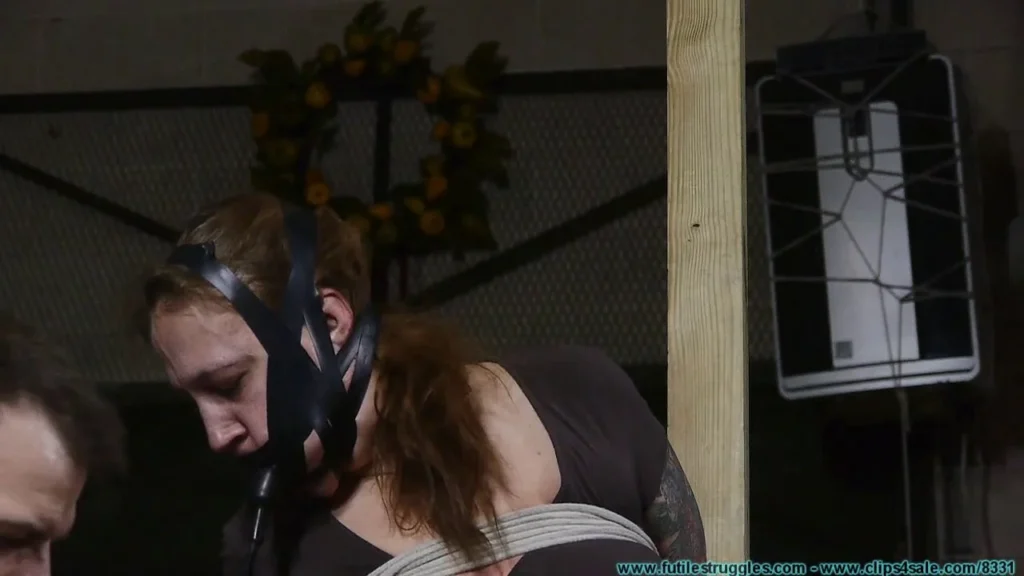 Brenda is Dr. Cupcakes newest captive. What perils await her this day! The clip starts with Brenda being gagged with an Ace bandage. We then see that she is tied to a chair. As she moans and endures the tight gag, more rope is added, securing her to the chair. Dr. Cupcakes must not feel that her gag is effective enough as he adds several wraps of black tape over the already stretched Ace bandage cleave gag. He then adds more rope once again, this time to her thighs. He removes her current gag and replaces it with a dirty shop rag and black tape. More rope is added. Brenda’s gag is removed once again and is replaced with a pump gag. Tape is wrapped around her mouth and under her chin to make sure it stays put. More and more rope is added, making her bondage more strict with every wrap. At the end of the clip is pump gag is removed along with a long stream of drool.