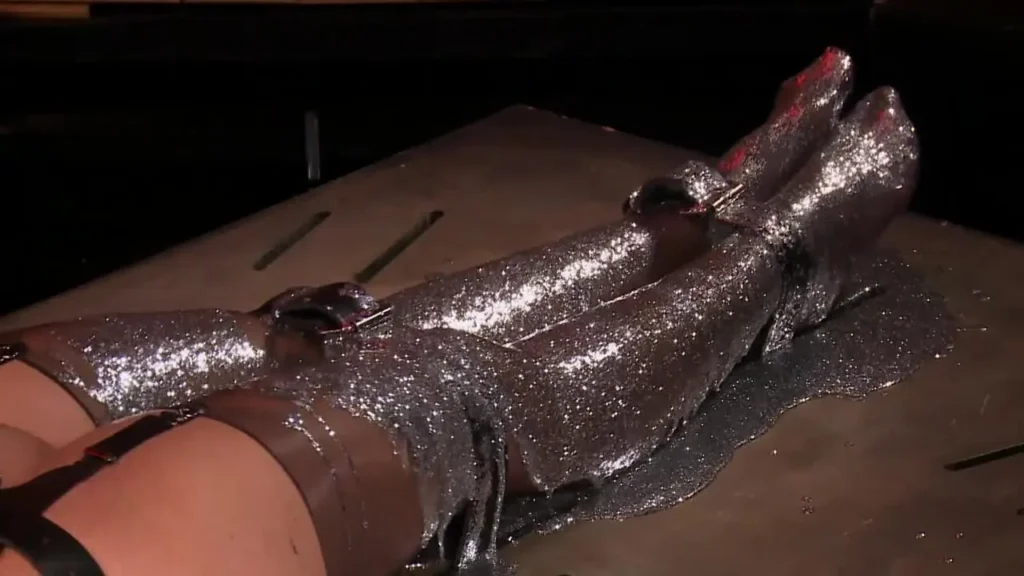 Having been unmasked in the last chapter, Barbara Gordon (Angela Sommers) finds herself tightly strapped to a slab in Black Widow’s (Christina Carter) lair. Black Widow explains to the helpless daredoll that she intends on taking care of her once and for all. She pushes a button on a remote and thick…