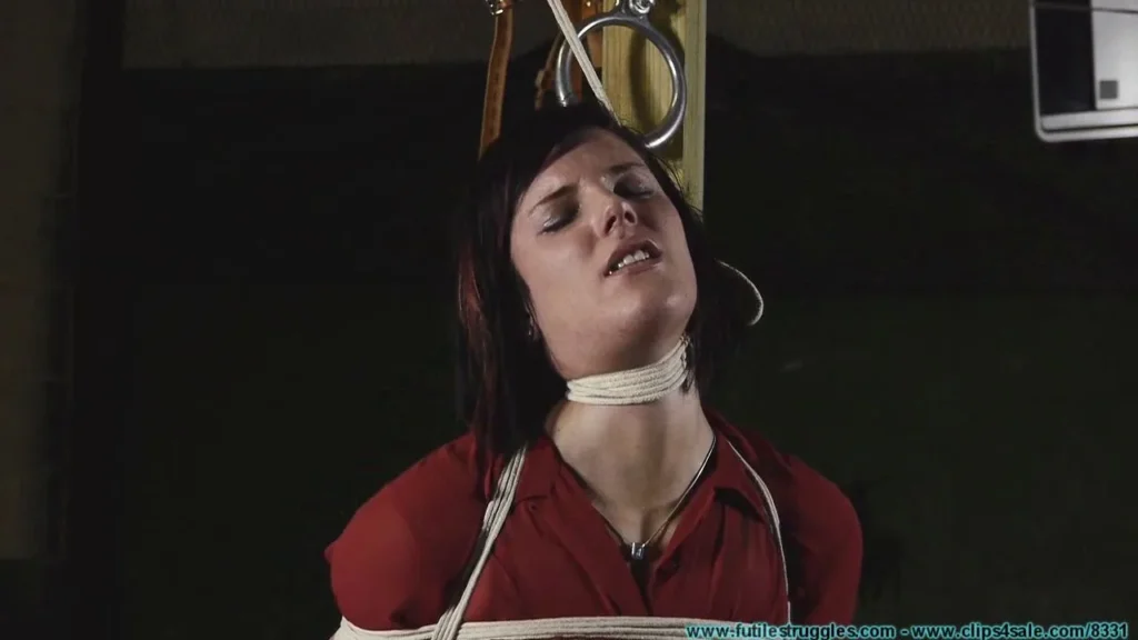 After looking at previews of my work Erynn decided she wanted to give it a try. The clip starts with me leading her in by her hair. She is in distress from the 1st second. I have her put her arms behind her back and she eagerly complies. After I have her arms somewhat secure, I attach the rope around her neck overhead. I continue binding her upper body, occasionally stopping to grope her and smack her ass. Erynn is obviously very sensitive, as I have never seen anyone react so violently to being bound, lol. I add a tight crotchrope and proceed to bind her thighs in multiple places.Erynn grimaces in pain with every little pinch. I should mention that she has never worn heels before, let alone heels as high as the ones SHE picked out. She thought they looked “cool”, but she was soon regretting her decision. After her thighs are tightly bound, I turn her around and grab and smack her ass a few more times. I finally remove the neck rope and sit her in a chair. By this point she can barely stand, and I don’t want her falling. I add more rope to her upper body as well as tightening up her crotchrope a little more. I get out more rope and tie her legs below the knees in multiple places. This is where Part 1 ends.