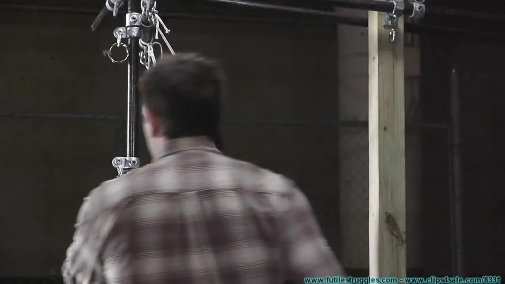 This clip starts where Part 1 ended… I limit Sayrye’s movement even more by grabbing hair on both sides of her head and making rope piggy tails. I tie them off up and out, further limiting her mobility. I leave her for a while. I return and remove her collar. I then remove the nipple clamps and she screams and moans as they come off and as I pinch her nipples afterwards. I grab more rope and I tightly tie each of her tits. More rope is then added to her upper body and the steel pipe. When I’m done her tit bondage is even tighter as they are cinched together tight, with the pipe in between. She’s really going to feel a stretch when I bind her elbows. Now it’s time for a gag. I attempt to stuff 2 very large pairs of panties in her mouth, but it doesn’t look like they’ll both fit. This is where Part 2 ends.