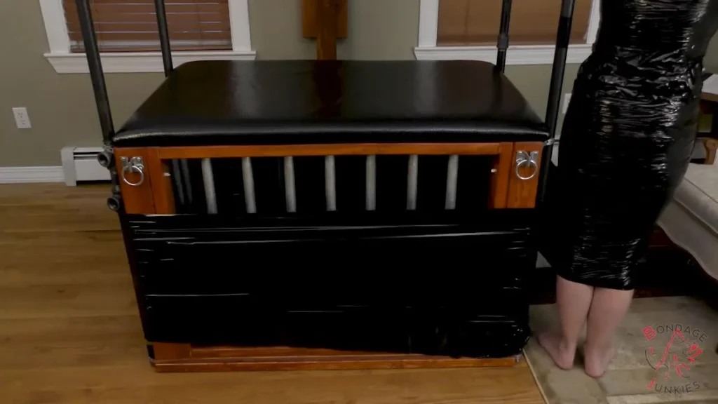 While Rachel is no stranger to self-bondage she was in the mood for something new. Mummification was on her mind and with a little research, she came up with a solution. Wrapping pallet wrap around poles she’s able to circle around them to wrap herself tight. As this is a trial run her escape plan is to just unwrap the other way. It wasn’t until her ankles were wrapped together that things went awry. Falling onto the couch the wrap is so tight it takes all she can do to lay down straight let alone stand up. Trapped under 12 layers of plastic, it will be a long while before she can get herself out.